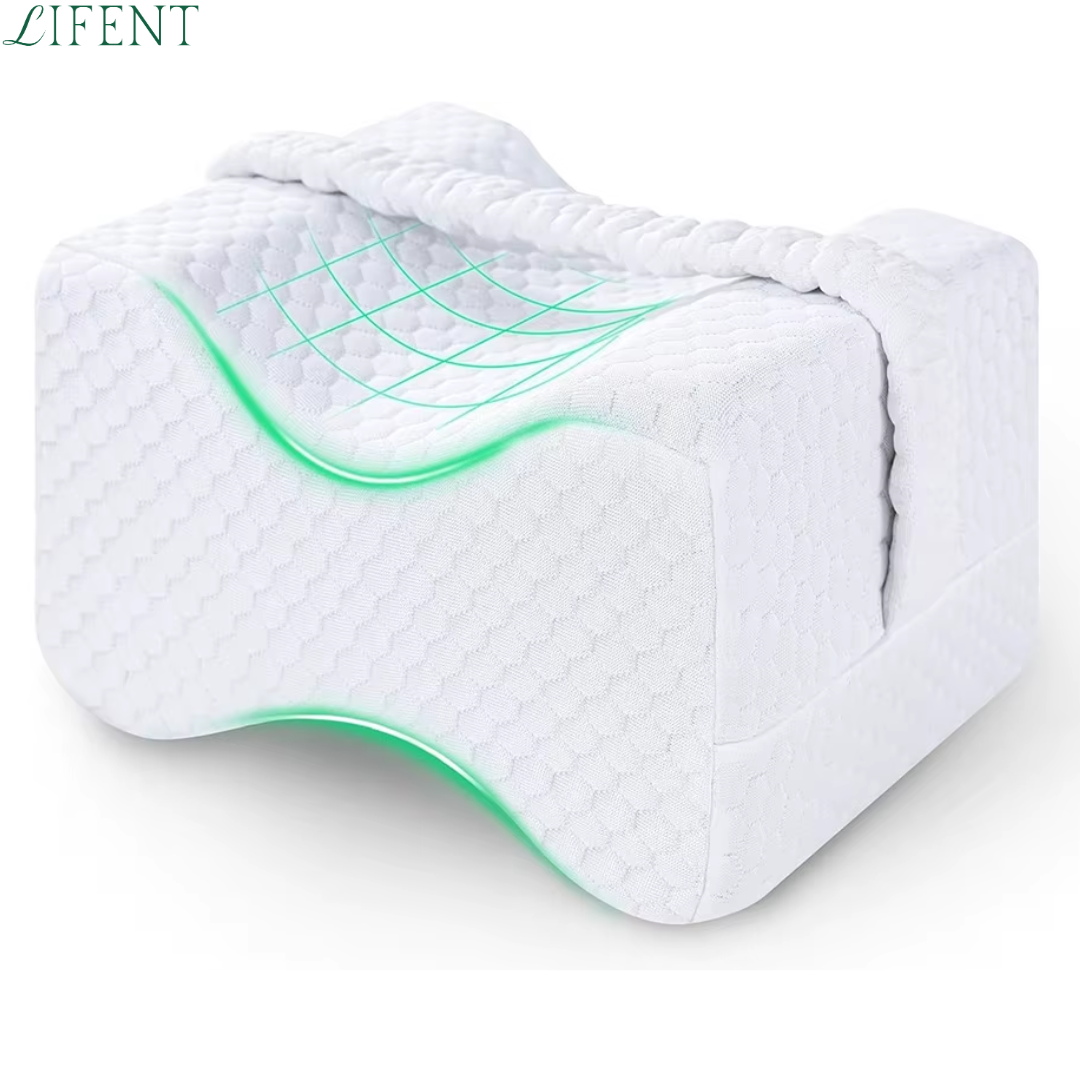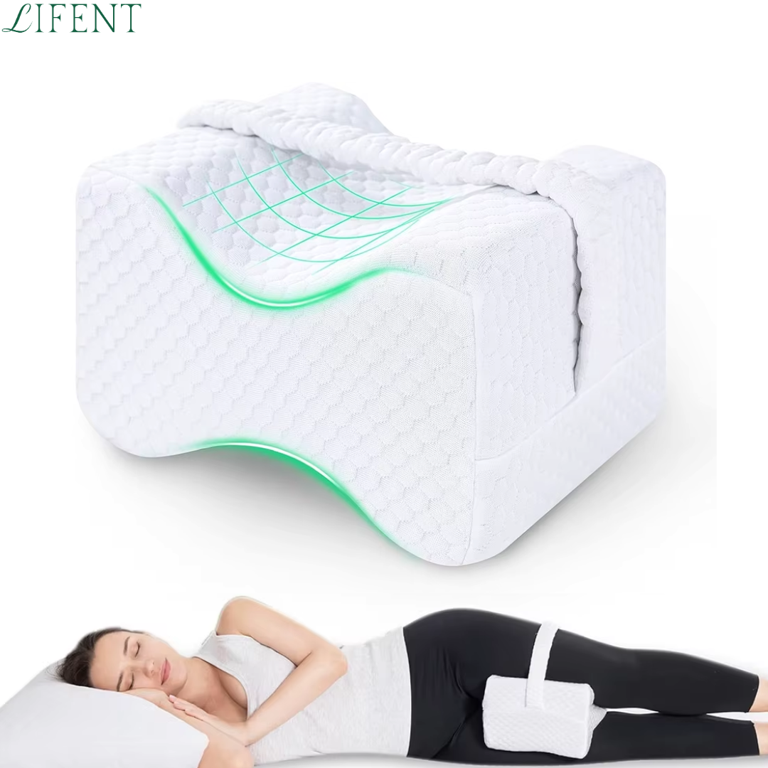 A almofada para pernas foi criada para posicionar as pernas de forma a beneficiária do quadril, reduzindo a pressão e comodidade um sono melhor sem dores ao acordar.